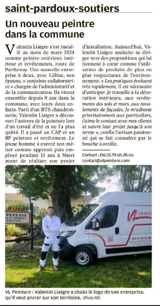 Samuel BaudetNous sommes très satisfaits des services de VL PEINTURE. Valentin est très professionnel, de bons conseils et son travail est soigné. Si vous recherchez un peintre de qualité, vous pouvez faire appel à lui.